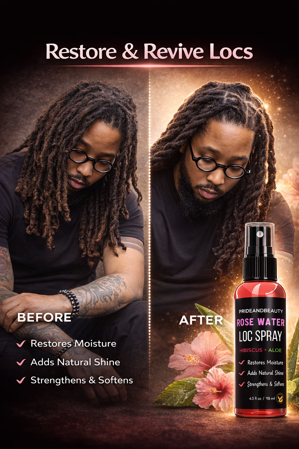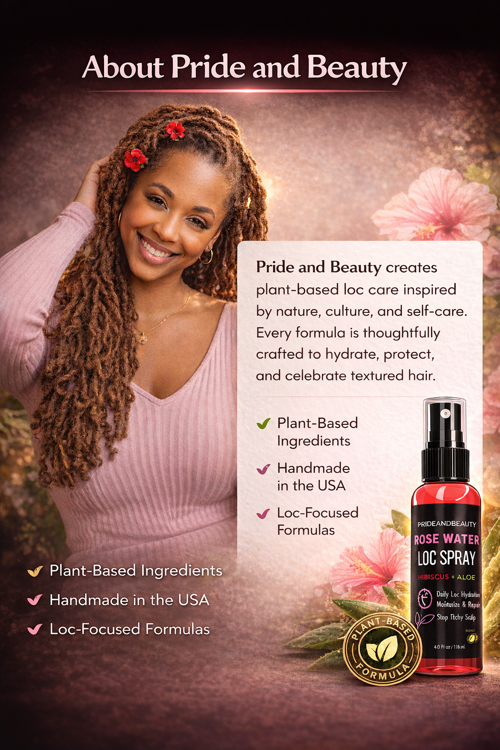 Perfect for daily use, this gentle yet effective spray helps soothe dryness, reduce itchiness, and restore moisture balance—making it a must-have in your loc care routine. Whether your locs are new, mature, or styled, Pride and Beauty supports your natural hair journey with love, care, and intention.